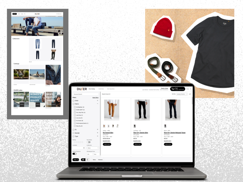 Elastic Suite is integrated with the brand’s wholesale marketing strategy, emphasizing sales enablement and dedicated service to key accounts. DUER’s wholesale marketing team tailors assets to meet the specific needs of individual stores, with custom Point of Purchase (POP) packages built directly in the Elastic platform. Additionally, the team at DUER has developed fully customized collections with marketing assets and builds assortments designed to enhance the presentation of DUER’s products in retail spaces.