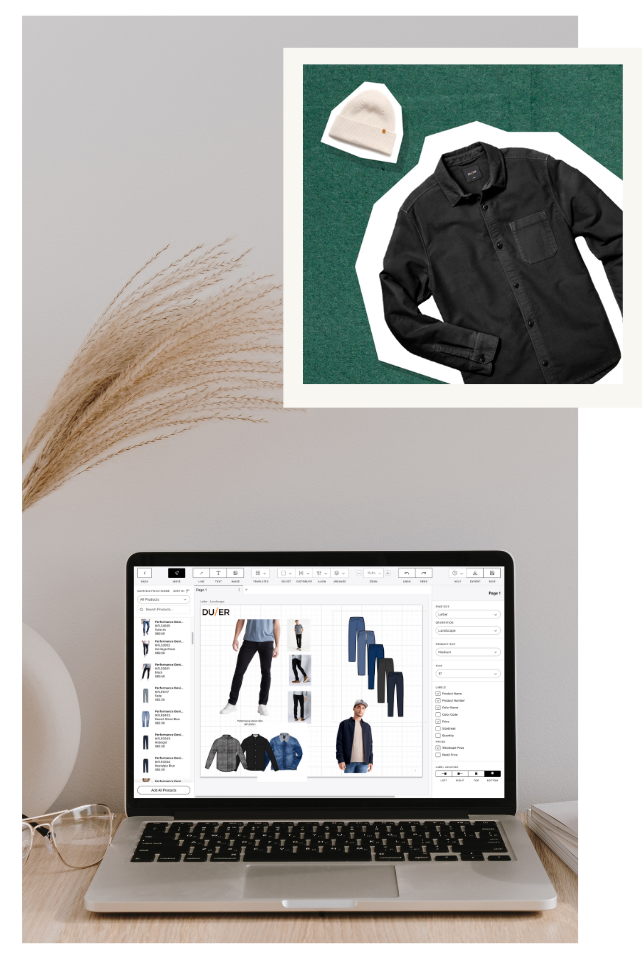 One of Elastic’s foundational features, the whiteboard, is one of DUER’s favorite tools to help develop an effective merchandising strategy. The tool allows sales reps to create assortments in real time and work collaboratively with buyers. Amy Faire, DUER’s Senior Sales Manager, praises this feature, stating, “Elastic’s whiteboarding tool allows me to create an assortment and work with my buyers while they’re laying things up on a grid. I export a PDF and share it with them before they leave the appointment. That’s my favorite feature because it’s a more curated and visual version of a standard catalog or order proposal.”